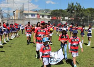 La cancha de fútbol es el lugar donde los familiares, amigos, vecinos se reúnen para jugar, divertirse y vivir momentos de confraternidad deportiva, resaltó la presidenta de la organización deportiva, Alexandra Peláez. La ceremonia resaltó con la participación de la banda de paz del colegio, Emilio Uzcategui, que le dio un ambiente multicolor a la jornada.