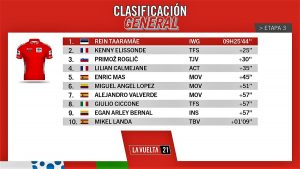 De esta manera, Richard Carapaz desciende al 27° lugar en la general, a 2’15” del nuevo líder Rein Taaramäe (Intermarché-Wanty-Gobert). Pero, más importante aún, ya cede 1’45” con Primoz Roglic (Team Jumbo-Visma), quien es la gran referencia de cara a la lucha por el título.